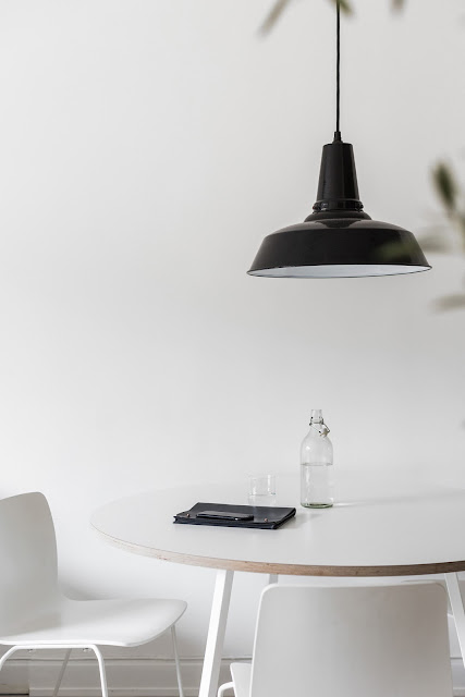 Airy minimal kitchen with a cozy feeling thanks to decoration details and the rustic stools. It's has such a welcoming look.